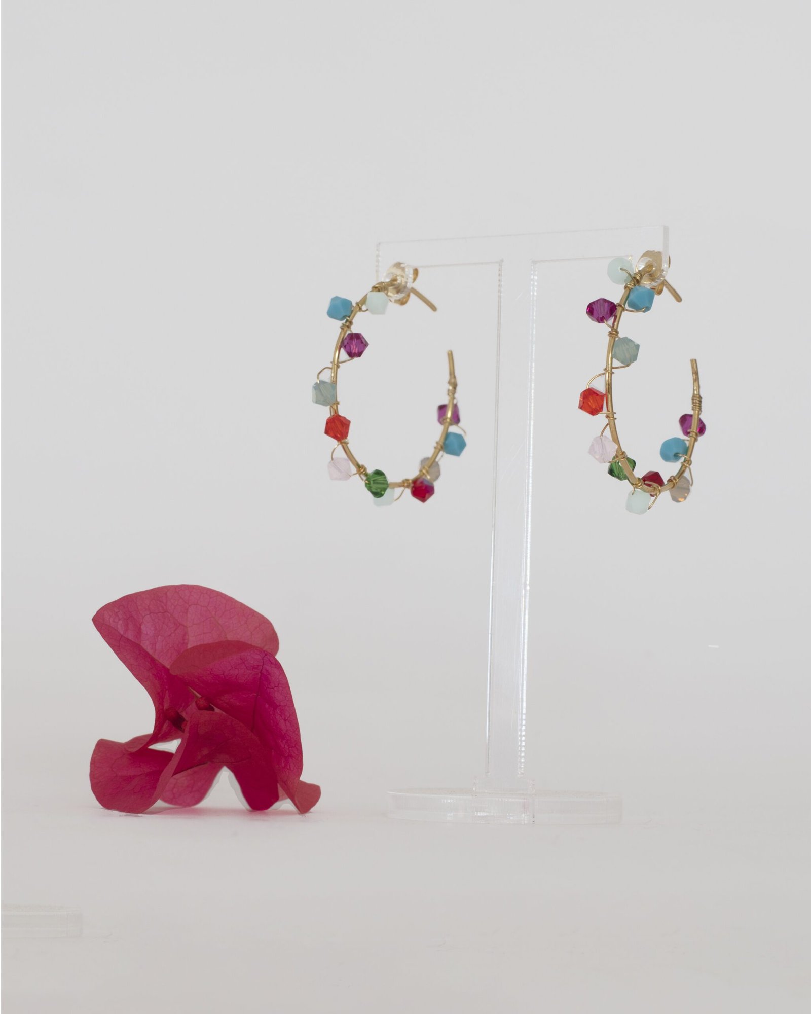Llenos de color, estos aros super versatiles, podrás combinarlos facilmente y llevarlos en cualquier situación.