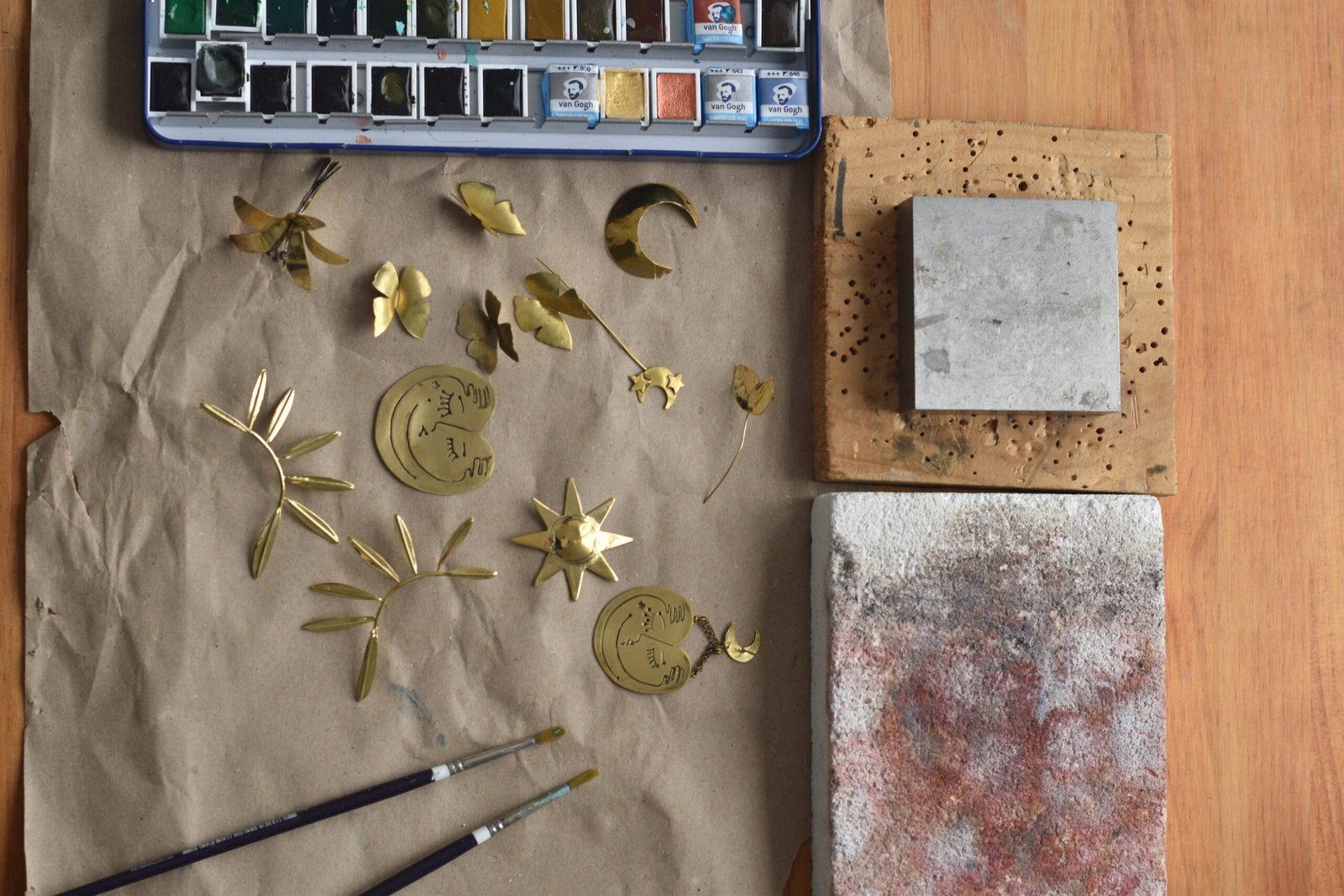 Fabricación de cuentas de pasta de papel maché con textura y acabado de pintura y barnices.